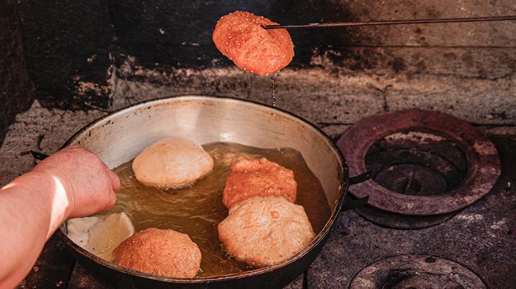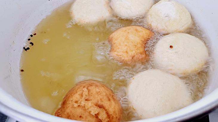 Hamuru kare, üçgen, dikdörtgen istediğiniz şekilde kestikten sonra derin bir tavada yağı kızartmaya başlayın. Kestiğiniz parçaları yağa atın ve her iki tarafı da kızarana kadar iyice pişirin. Eğer ocağın ateşi çok yüksek olursa hamurun dışı hızlı kızarıp içi de çiğ kalabilir.